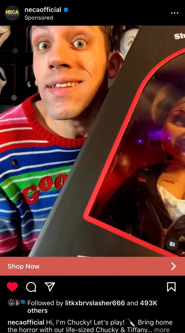 I've collaborated with; Jason Egan (Owner of Escape it, SawEscapeRoom & BlairwitchEscape), Lionsgate, Paramount Pictures, Sony Pictures, Blumhouse, Universal Pictures, NECA, Kissing Candice, Terrifier, Screamboxtv, Bloodydisgusting, Thriller Records, CLOAK, Trickortreatstudios, Beyond Masquerade, Kidrobot, Costumes.com, Nightmare Killerz, Addison Egelhoff, MichaelMyersofTikTok, Worlds_Apart, Ice Nine Kills, Roniveesboutique, PlushThis, COLBOR, Spirit Halloween, Vampire Freaks, and many more.